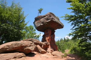 Der Pfälzerwald ist das größte zusammenhängende Waldgebiet Deutschlands. An der Grenze zu Frankreich im Dahner Felsenland ragen viele farbenprächtige Buntsandsteinfelsen weit über die Baumwipfel hinaus und leuchten wie rote Türme im grünen Blättermeer. Die bekannteste Felsformation ist der Teufelstisch - das Wahrzeichen des Biosphärenreservates. Der Trifels mit seiner erhabenen Reichsburg ist die bekannteste Felsenburg. Weitere nahezu unzählig viele Burgen und Ruinen thronen über dem hügeligen Wald, der aus krüppeligen Kiefern, Eichen und Buchen zusammengesetzt ist. Hier leben verborgen Rothirsche, Wildschweine und Luchs. Wanderfalken brüten in den roten